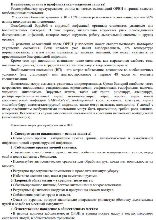 Памятка РОСПОТРЕБНАДЗОРА о профилактике ЭВИ