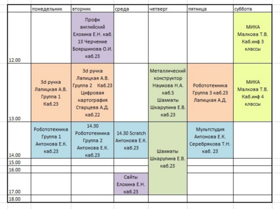 Расписание занятий в Центре образования естественно – научной