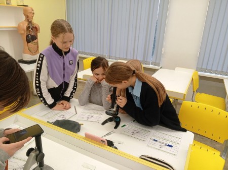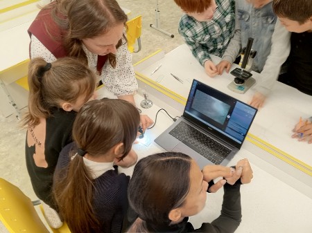 Курсы проводили учитель физики Кузнецова Ирина Васильевна и учитель биологии и географии Старцева Алёна Дмитриевна. На уроках физики ребята с удовольствием познакомились с проектом "Умная теплица", пробовали проводить ток через овощи и фрукты, измеряли разными термометрами, в том числе, цифровым, температуру жидкостей. На уроках биологии они познакомились с разными видами микроскопов, в том числе цифровым, и наблюдали в них различные элементы живой природы. Все без исключения посчитали курсы интересными и полезными.