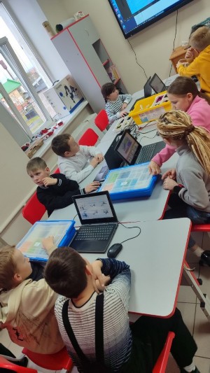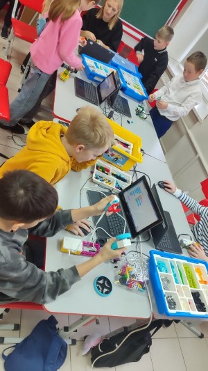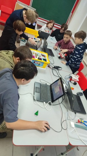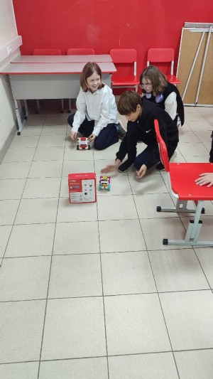 - На уроках по Робототехнике ребята собирали роботов-доставщиков и задавали им алгоритм движения и действий через систему программирования.